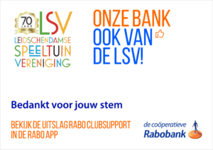 Dankzij jouw stem heeft de Leidschendamse Speeltuin Vereniging dit jaar โฌ 917,90 ontvangen! Hartelijk dank voor alle leden die op ons hebben gestemd en natuurlijk de Rabobank voor hun bijdrage voor ons 70 jarig bestaan!